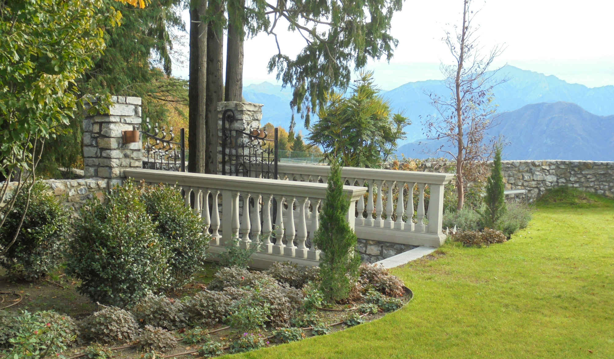 Replica stone pillars and cast iron railings on re-instated boundary